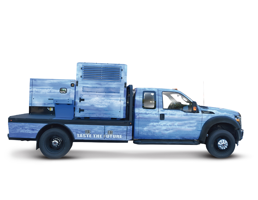 Customized heavy-duty track equipped with Watergen’s GEN-M, providing clean.drinking water to people in emergen cy situationsIdeal for long-term sustainable water generation throughout all phases of emergency and crisis responses;Can provide lifetime water to a community of 500-800 people. 1L to each person;Cost per liter 2-4 cents
